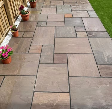 Timeless Indian sandstone finishes provide a classic touch to your garden, offering beauty and elegance while ensuring a durable and functional outdoor space for years to come.